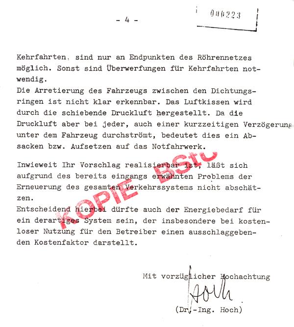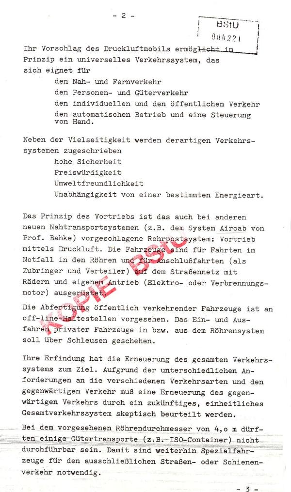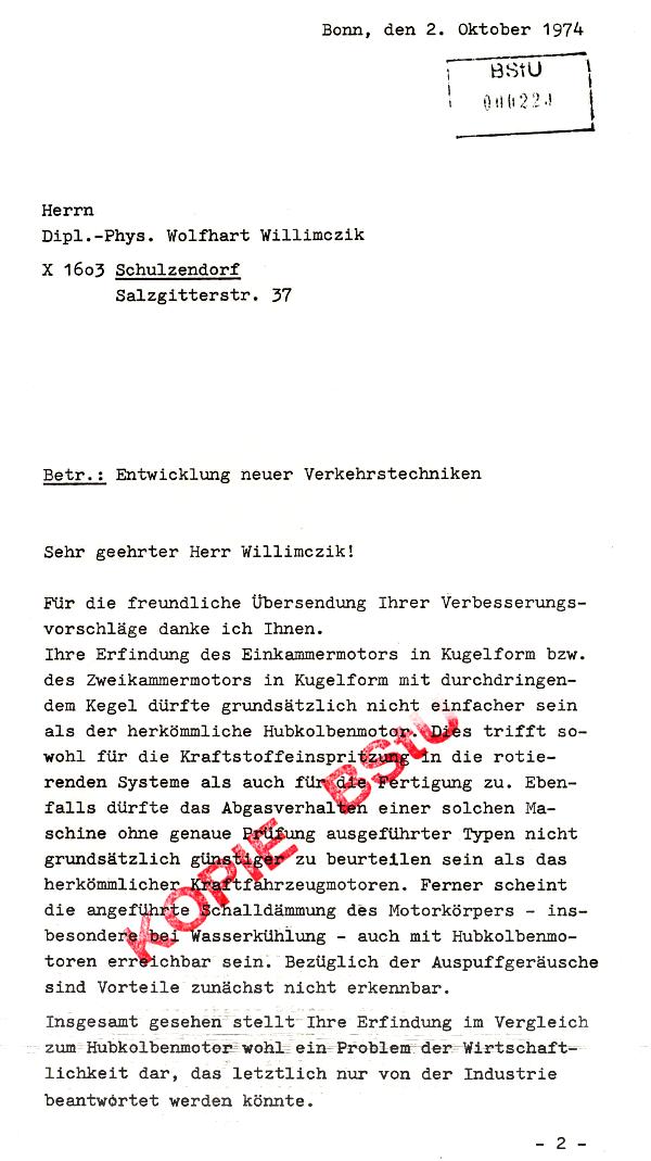 Der Regierungsdirektor Klaus Bolln von der Ständigen Vertretung in Ost-Berlin leitete meine Vorschläge weiter. Der darauf folgende Brief aus Bonn, liegt heute gleich 4 mal in den Stasi-Akten, d.h., er kam auf 4 verschiedenen Wegen zum SSD, was ein Indiz für den Grad meiner Überwachung ist.