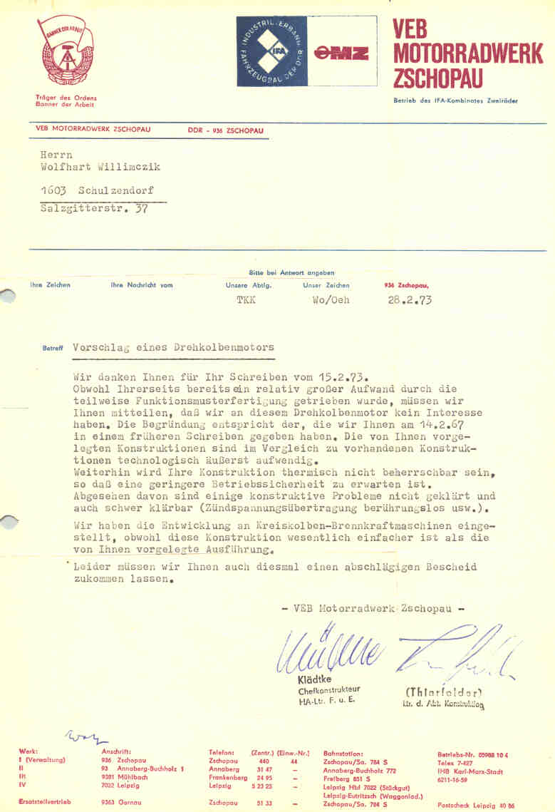 Ich hatte auch bessere Zuschriften bekommen, die aber alle verschwunden waren, nachdem der SSD (Hauptmann Wagner) eine Haussuchung bei mir gemacht hatte. Der Briefverkehr ging nur über meinen Onkel in München, der es aber leider nicht überlebte. Prof. Huber in München bekam meine Briefe nicht; als ich endlich in Freiheit war und ihn 1978 besuchen wollte, war er ebenfalls tot.