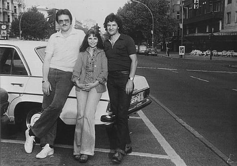 Links Agentenführer Alain (Alois, Ali) Witzl von Siemens, Mitte Gudrun Adams/Dötsch/Labrenz und rechts ihr Opfer, der Kernphysiker und Erfinder, der gerade aus DDR-Haft entlassen worden war, auf dem Kuhdamm 1979 in Berlin-West. Alle drei waren Hauptakteure auf dem Hof der Schabenbergers in Bayern, bei dem auch mein weißer Mercedes (im Hintergrund) eine Rolle spielen sollte, sich aber im letzten Moment weigerte, bei dem Attentat gegen seinen Herrn mitzuspielen...