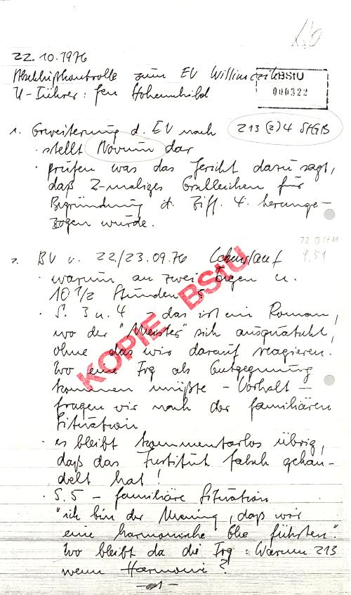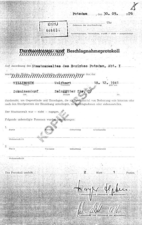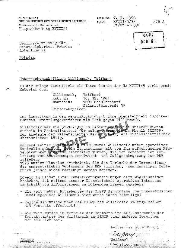 Der Genosse Oberstleutnant Weißbach bestätigt hier, dass ich "unter operativer Kontrolle" stand, die allerdings bis heute nicht aufgehoben wurde, weshalb mein Nachbar James Cassidy ständig vor meinem Haus in Point West/Bradenton /Florida steht und ein anderer mein Telefon abhört.