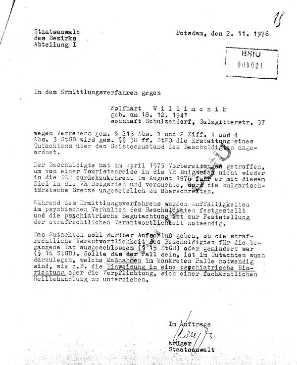 Ich war der einzige in der Welt, der diesen "Technologie-Transfer" des SSD auffliegen lassen könnte - und durfte deshalb nie in den Westen gelangen. Wie sie hier lesen können, wollte man mich in einer Irrenanstalt verschwinden lassen. (Das wäre natürlich für alle Beteiligte die beste Lösung gewesen.) Davon kann die Staatsanwaltschaft in München noch etwas lernen. Die Staatsanwaltschaft in Potsdam wußte schon vorher, dass sie sich die Zähne ausbeißen würde, wenn sie nur versuchen würde mich vor Gericht zu stellen.