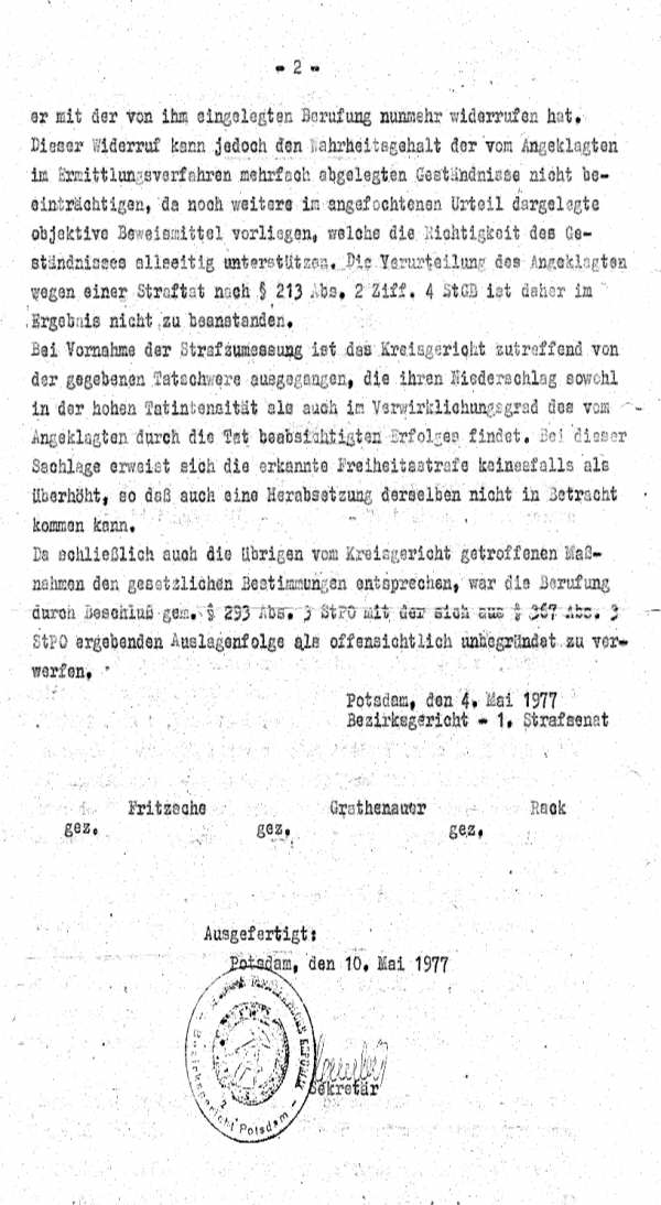 Nach 9 härtesten Monaten beim SSD in Potsdam hatte ich endlich das Glück verurteilt zu werden, was mir und meiner Familie endlich die Mauer öffnen sollte.